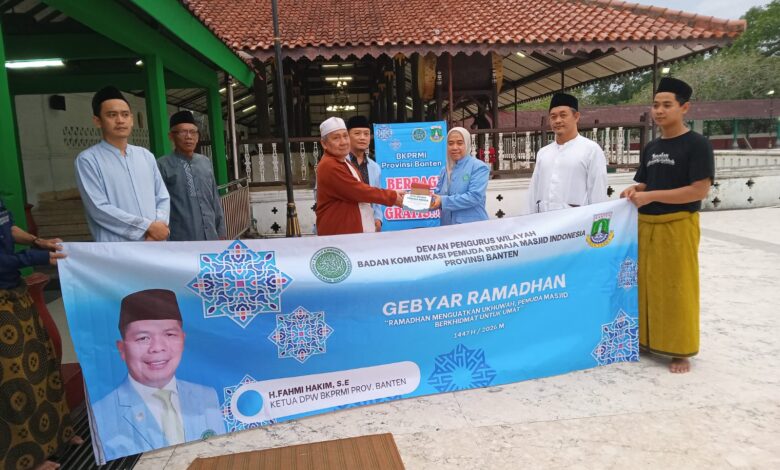 Serang, Banten – Dewan Pengurus Wilayah (DPW) Badan Komunikasi Pemuda Remaja Masjid Indonesia (BKPRMI) Provinsi Banten menggelar kegiatan sosial bertajuk Gebyar Ramadan 1447 H dengan membagikan takjil dan nasi box gratis kepada para jamaah di kawasan Masjid Agung Banten, Kota Serang.