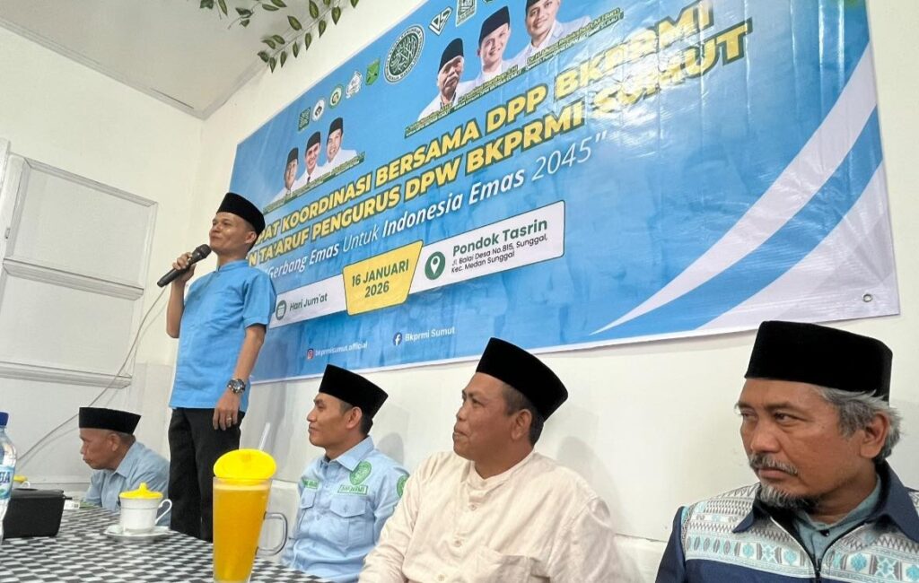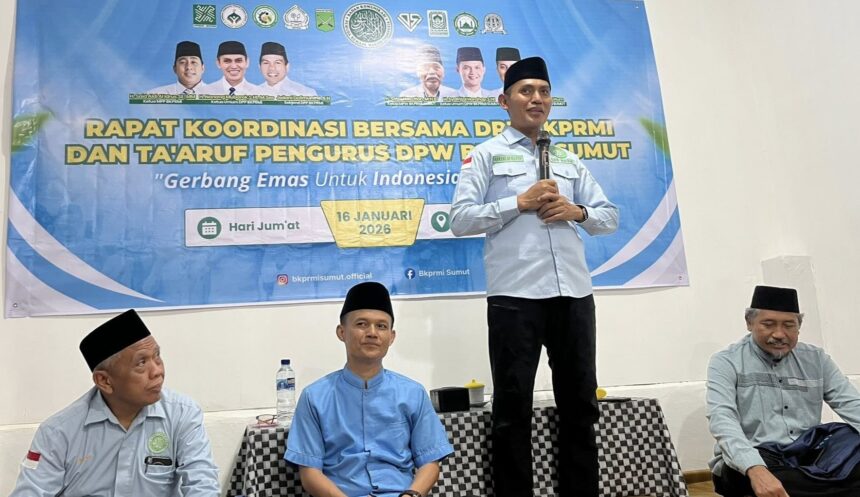 Medan — Dewan Pengurus Wilayah Badan Komunikasi Pemuda Remaja Masjid Indonesia (DPW BKPRMI) Sumatera Utara melaksanakan Rapat Koordinasi (Rakor) sekaligus Silaturahmi dengan Dewan Pengurus Pusat (DPP) BKPRMI yang dirangkaikan dengan Ta’aruf Pengurus DPW BKPRMI Sumatera Utara Periode 2026–2031. Kegiatan yang berlangsung di Medan, Kamis (16/1/2026), ini berjalan dalam suasana penuh kebahagiaan dan keberkahan serta menjadi momentum penting untuk mempererat ukhuwah dan menguatkan komitmen perjuangan dakwah sosial keluarga besar BKPRMI.